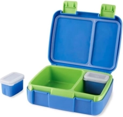 Esta caja de almuerzo es perfecta para niños de 3+. Ofrece un cierre seguro y bloqueos de uso sencillo, por lo que es ideal para los más pequeños. Gracias a la bandeja extraíble con 2 compartimentos es apta para microondas, al igual que los 2 recipientes independientes para snack con tapas. Tiene un asa flexible para un transporte fácil y todos los componentes se pueden lavar en el lavavajillas.