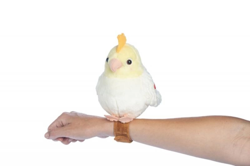 La pulsera garantiza que el loro se siente cómodamente en la mano del niño, fomentando el juego activo.