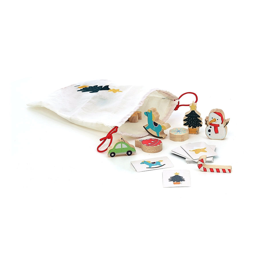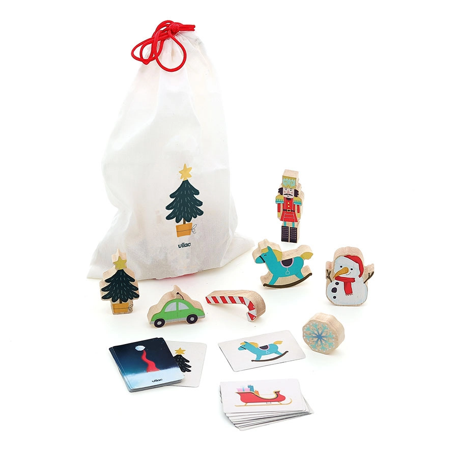El calendario de adviento de Vilac no solo es una gran diversión prenavideña, sino que también desarrolla una habilidad importante en los niños: el tacto. Con ayuda de las figuras de madera escondidas en una bolsa de tela, los niños ejercitan sus sentidos.