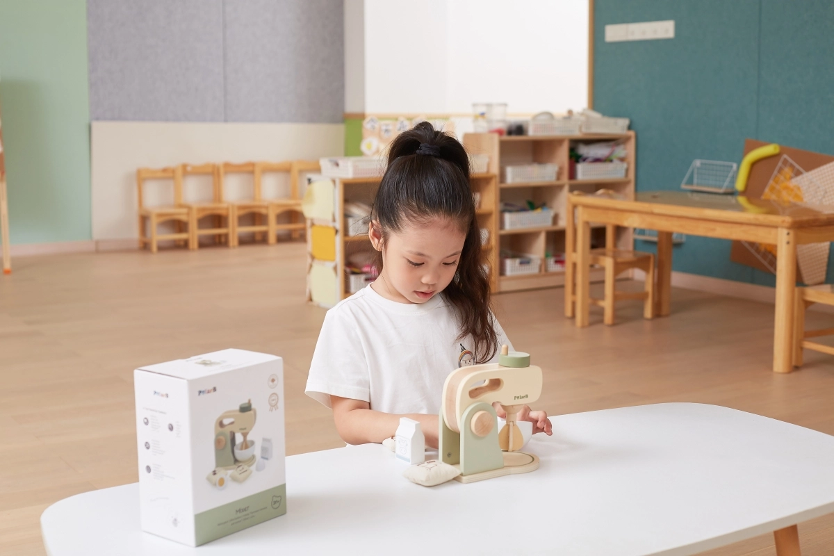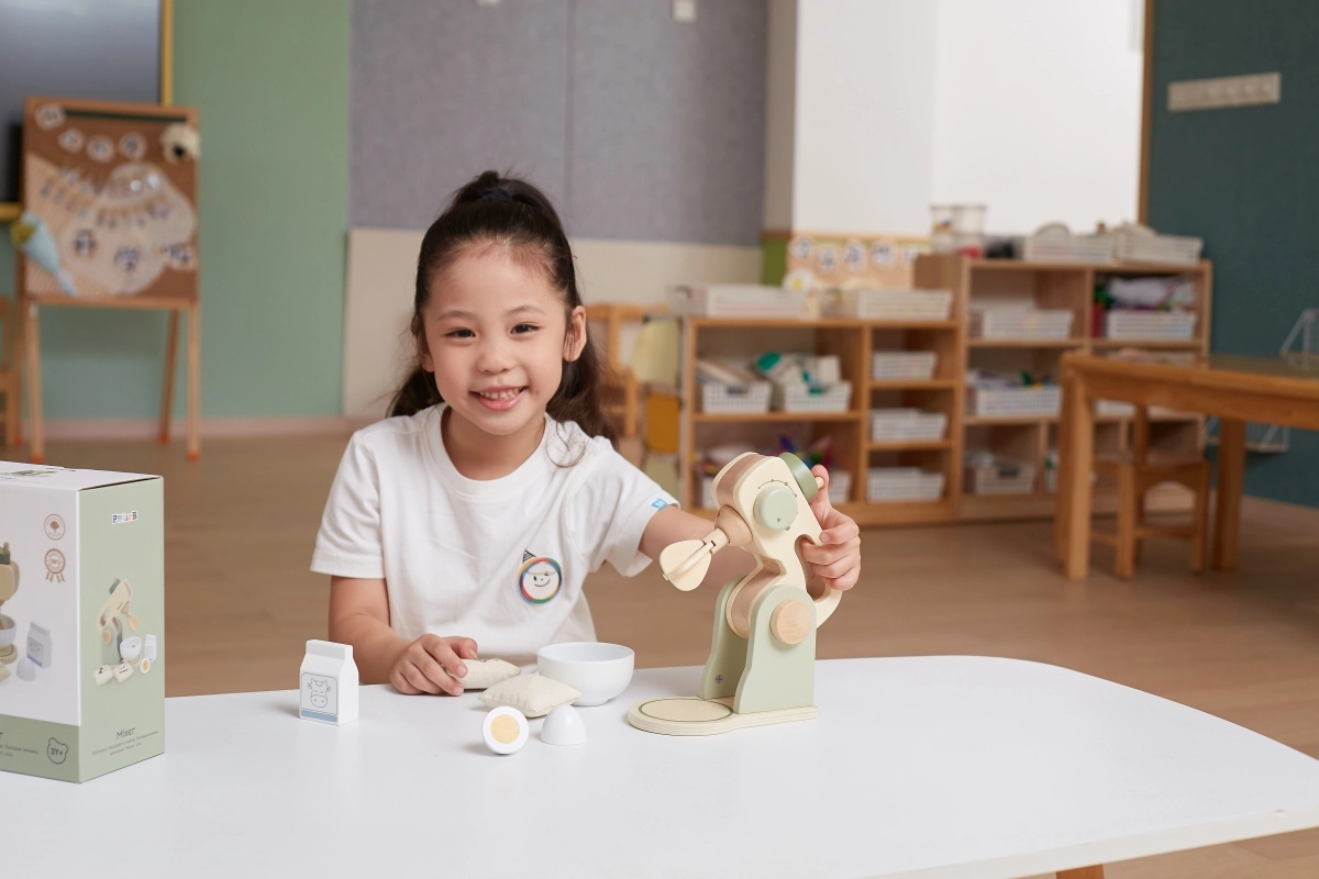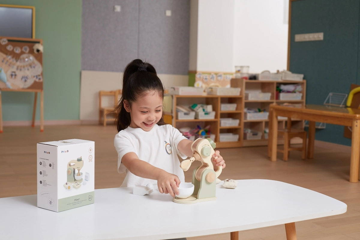 Gracias a su diseño, esta batidora ofrece a los niños la sensación de cocinar como en una cocina de verdad.
