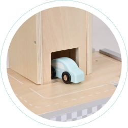 Tres niveles con rampas invitan a aparcar, conducir y maniobrar. Ideal para desarrollar la imaginación y la motricidad fina.