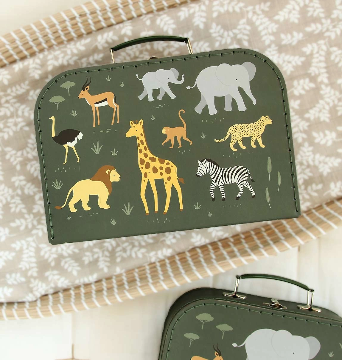 A Little Lovely Company set de dos maletitas de cartón para niños con motivos de animales del bosque