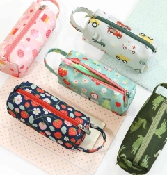 Elegante estuche para lápices y material de escritura con motivo de vehículos, hecho de poliéster sostenible. Ligero, resistente y práctico para casa, la escuela y los viajes. Cuenta con cierre de cremallera, forro interior y asa cómoda para transportarlo fácilmente.