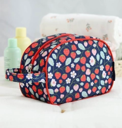 Un neceser con estilo con motivo de fresas, ideal para excursiones, campamentos y vacaciones. Ofrece un compartimento espacioso para champú, jabón, cepillo de dientes y otros accesorios, tiene un asa práctica para transportarlo fácilmente y un diseño resistente para el uso diario.