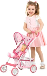 El cochecito se pliega rápidamente a un tamaño compacto, por lo que es fácil de transportar y almacenar. Jugar con el cochecito contribuye al desarrollo de la coordinación física y enseña a los niños cuidado, empatía y responsabilidad. El mantenimiento es sencillo: basta con un paño suave, seco o ligeramente húmedo.