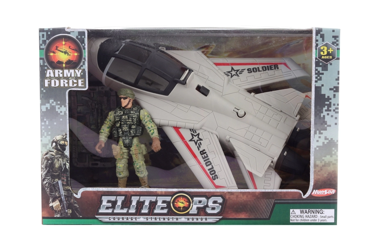 Explora el mundo de las aventuras militares con este caza de plástico de alta calidad y una figura de soldado. Este set es un gran complemento para cualquier colección de juguetes infantil.