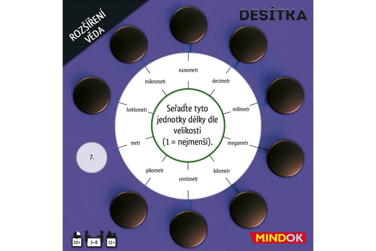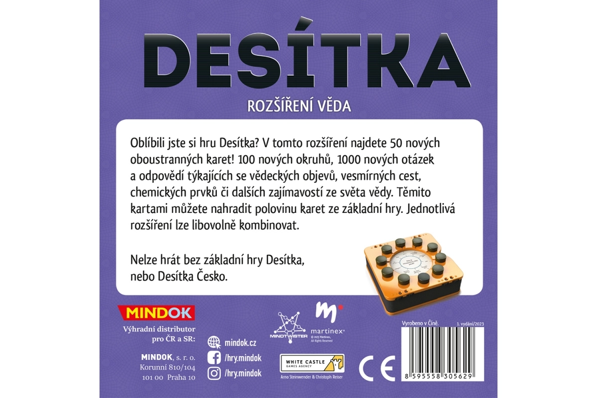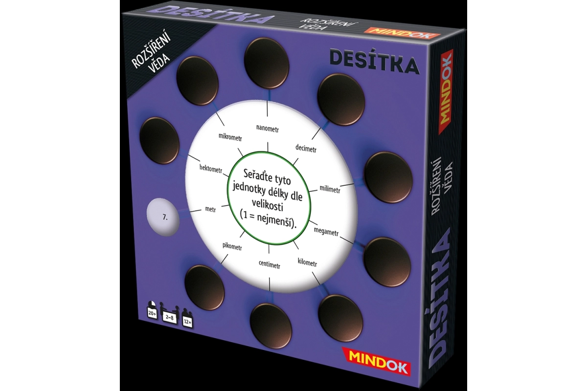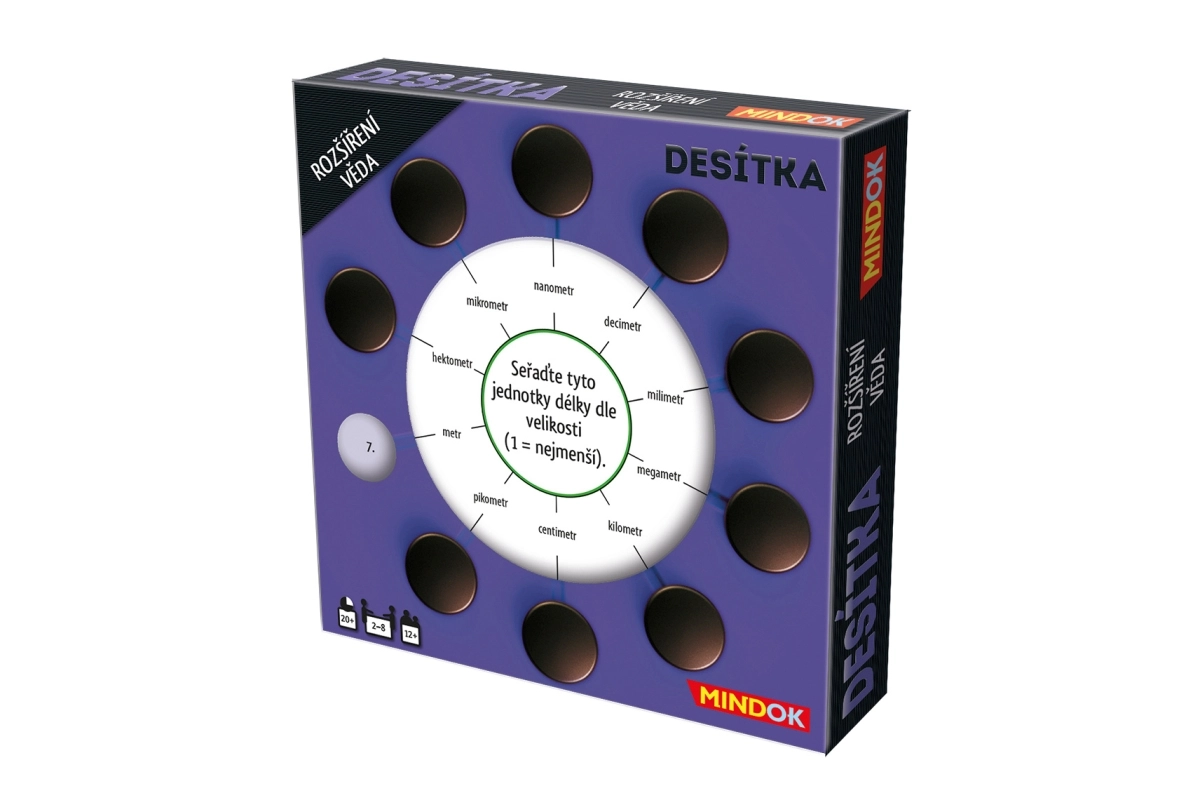 ¿Te encanta el juego Desítka? Esta ampliación trae 50 nuevas cartas de doble cara con temas de ciencia. ¡Disfruta nuevas preguntas sobre descubrimientos, el espacio y la química!