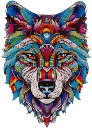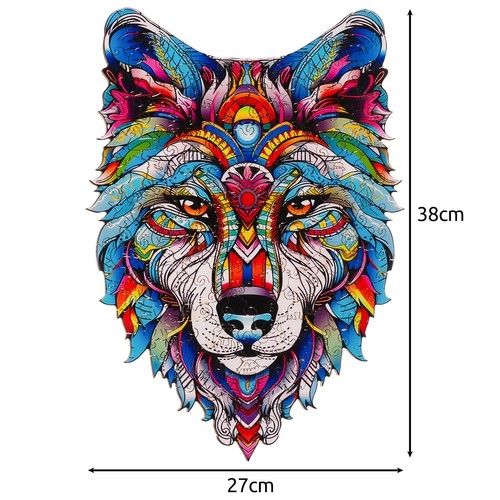 El rompecabezas de madera con la cabeza de un lobo colorido destaca por su original forma irregular y su detallado diseño gráfico. Las piezas están cortadas con precisión láser en contrachapado de madera estable, por lo que encajan a la perfección y resisten un uso prolongado. Armarlo desarrolla el pensamiento lógico, la paciencia y la concentración, y a la vez ayuda a reducir el estrés.