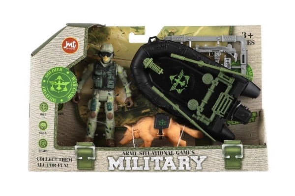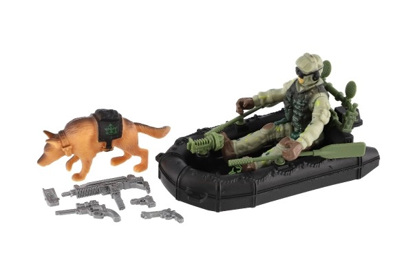 Este completo set militar brinda a los niños acción emocionante y escenarios infinitos. La robusta figura del soldado con equipo, el bote táctico y el compañero canino fomentan la imaginación, la coordinación y el desarrollo del juego narrativo. Gracias a los accesorios, los niños pueden crear sus propias misiones y entrenamientos.