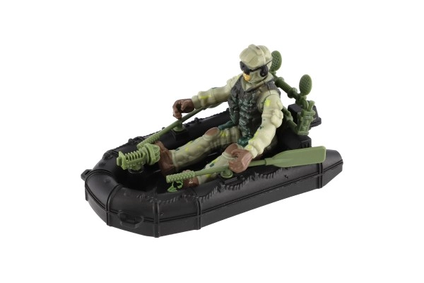 El ligero bote negro con bolsas laterales está listo para reconocimiento y operaciones de rescate. Complementa de maravilla los escenarios junto al agua y el juego en casa.