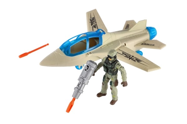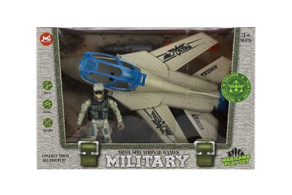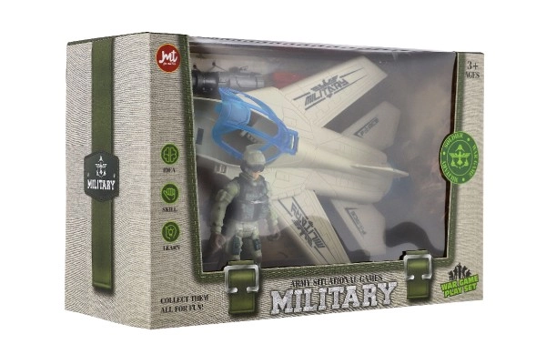 El set en caja de 27 × 18 × 12 cm incluye el caza, el soldado y accesorios: un regalo perfecto para pequeños amantes de las historias militares.
