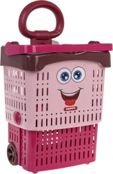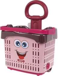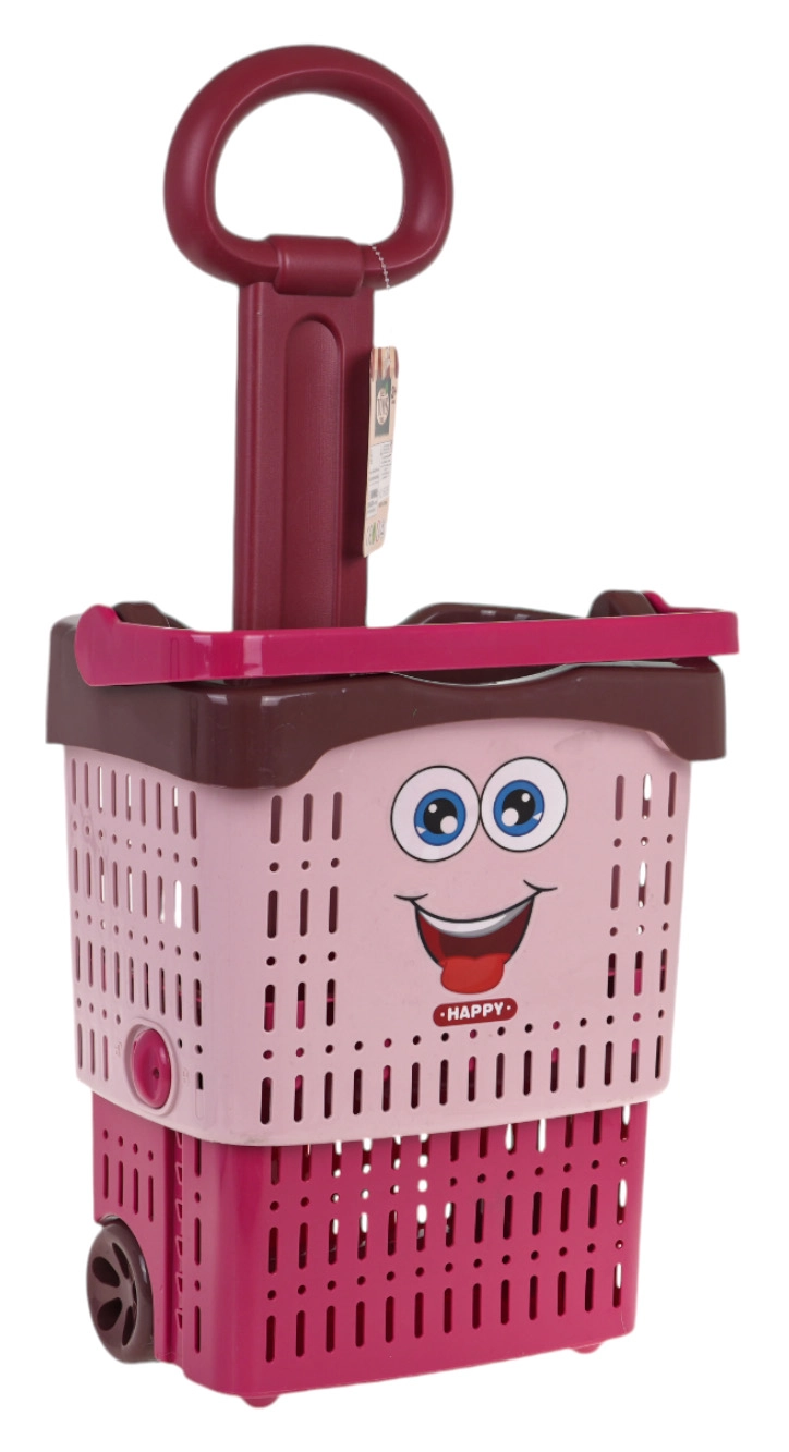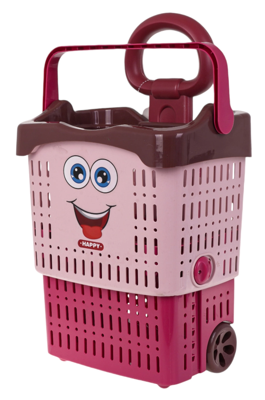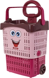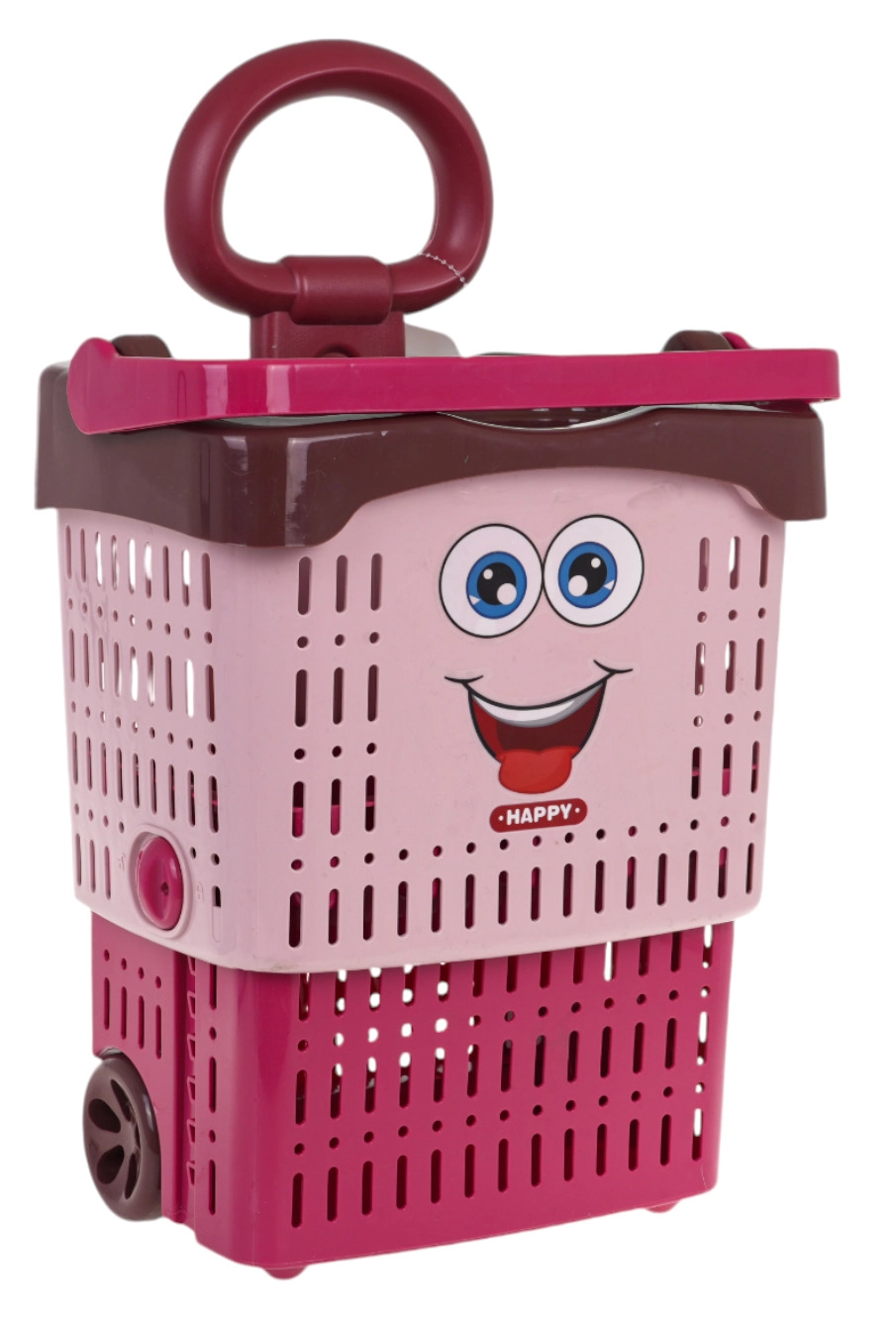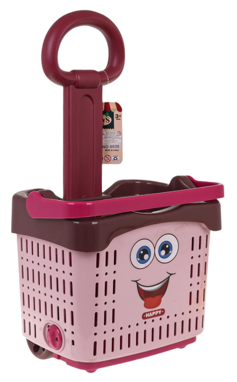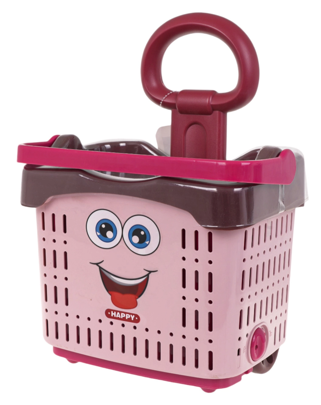 Esta cesta de la compra rosa tiene un diseño juguetón con una carita alegre y es ideal para desarrollar la creatividad y la interacción social.