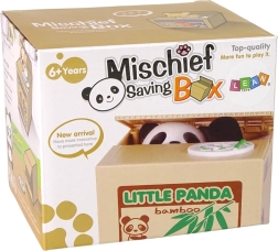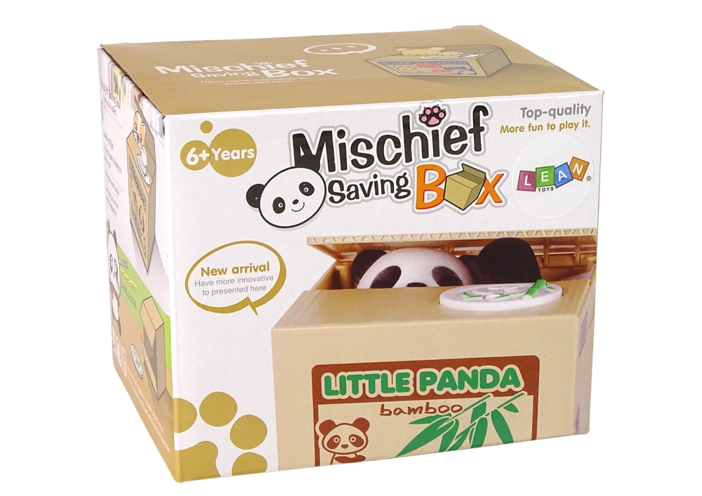 Esta hucha interactiva con panda enseña a los niños de forma divertida cómo gestionar el dinero. Solo hay que insertar una moneda y pulsar el botón: el panda levanta la tapa de la casita y atrae la moneda hacia dentro con la pata. Gracias a la práctica abertura en la parte inferior, la extracción del ahorro es rápida y sencilla.