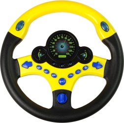 Este simulador de conducción infantil en combinación de colores amarillo y negro está diseñado para manos pequeñas y ofrece hasta 9 botones funcionales, incluidos intermitentes, bocina y señales de servicios de emergencia. La iluminación azul de los “indicadores” y el clic realista de los intermitentes crean una atmósfera envolvente de conducción real.