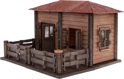 - Casa del granjero con cama y bancos.