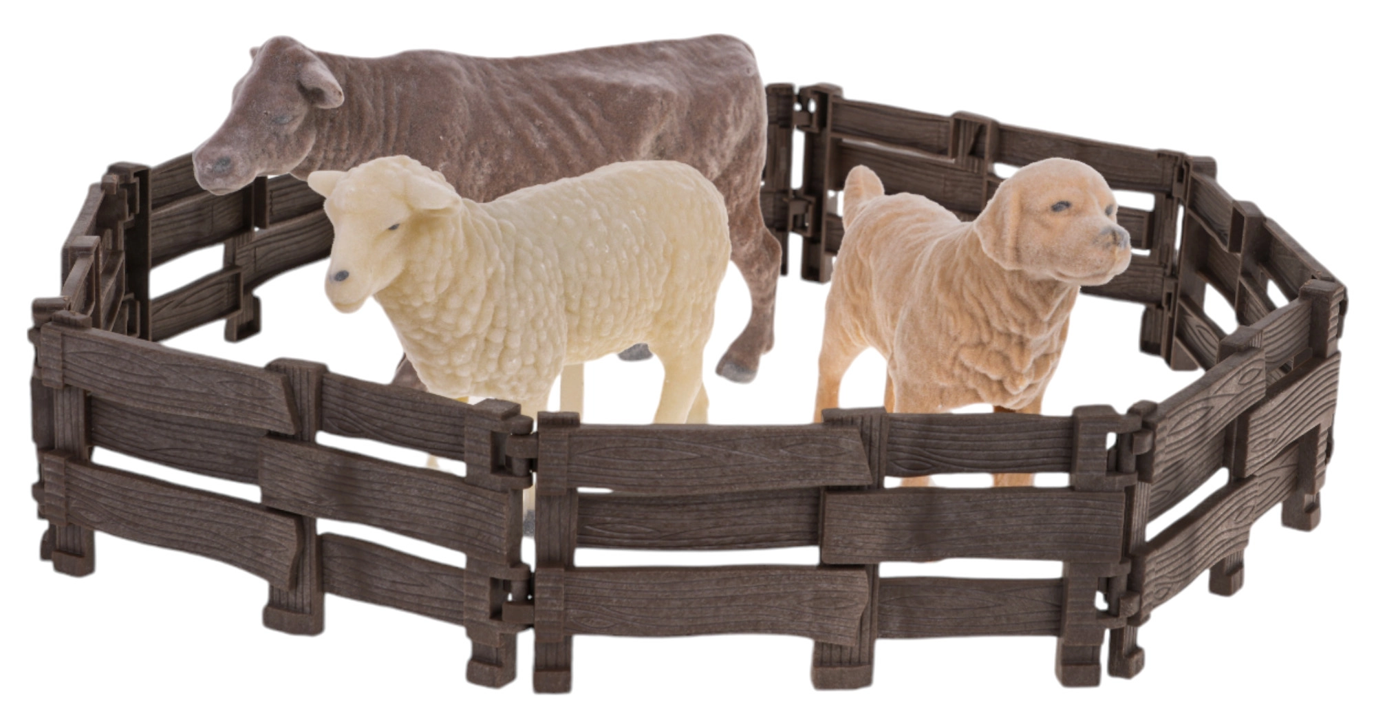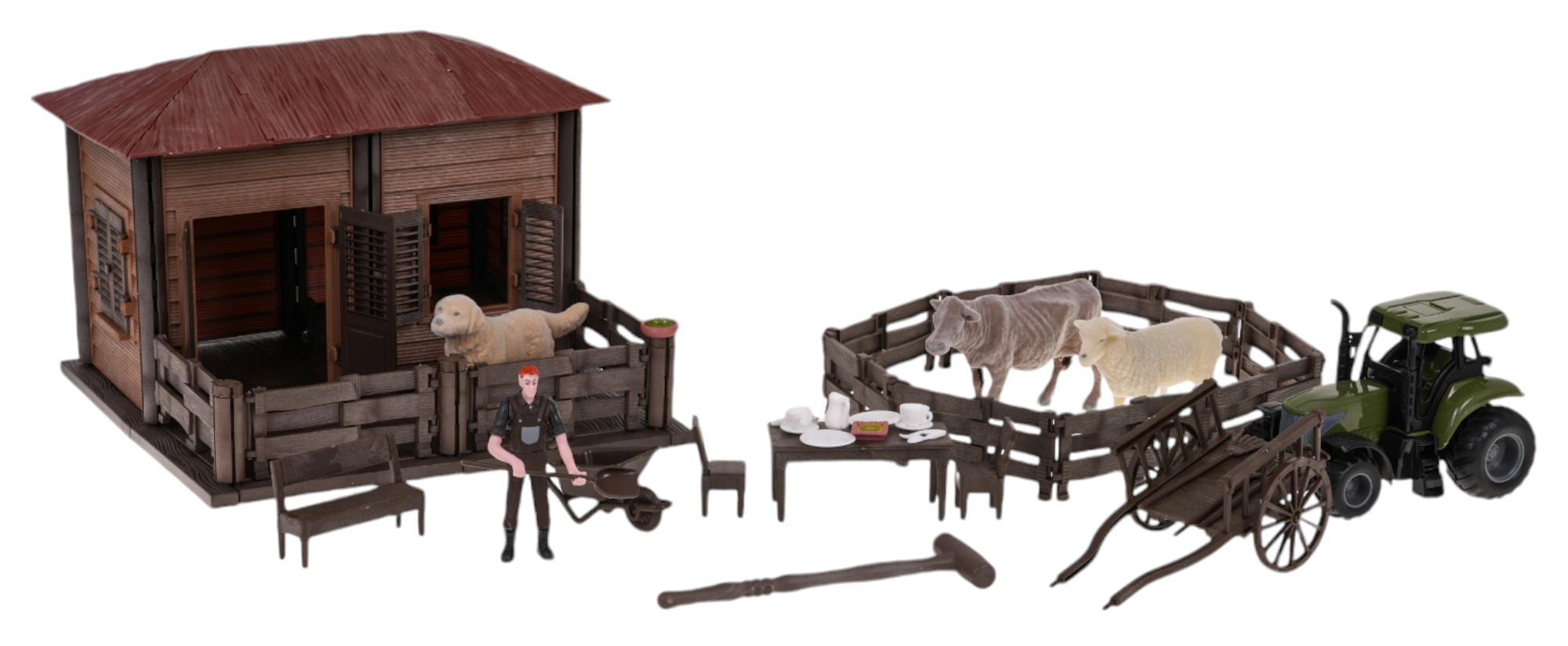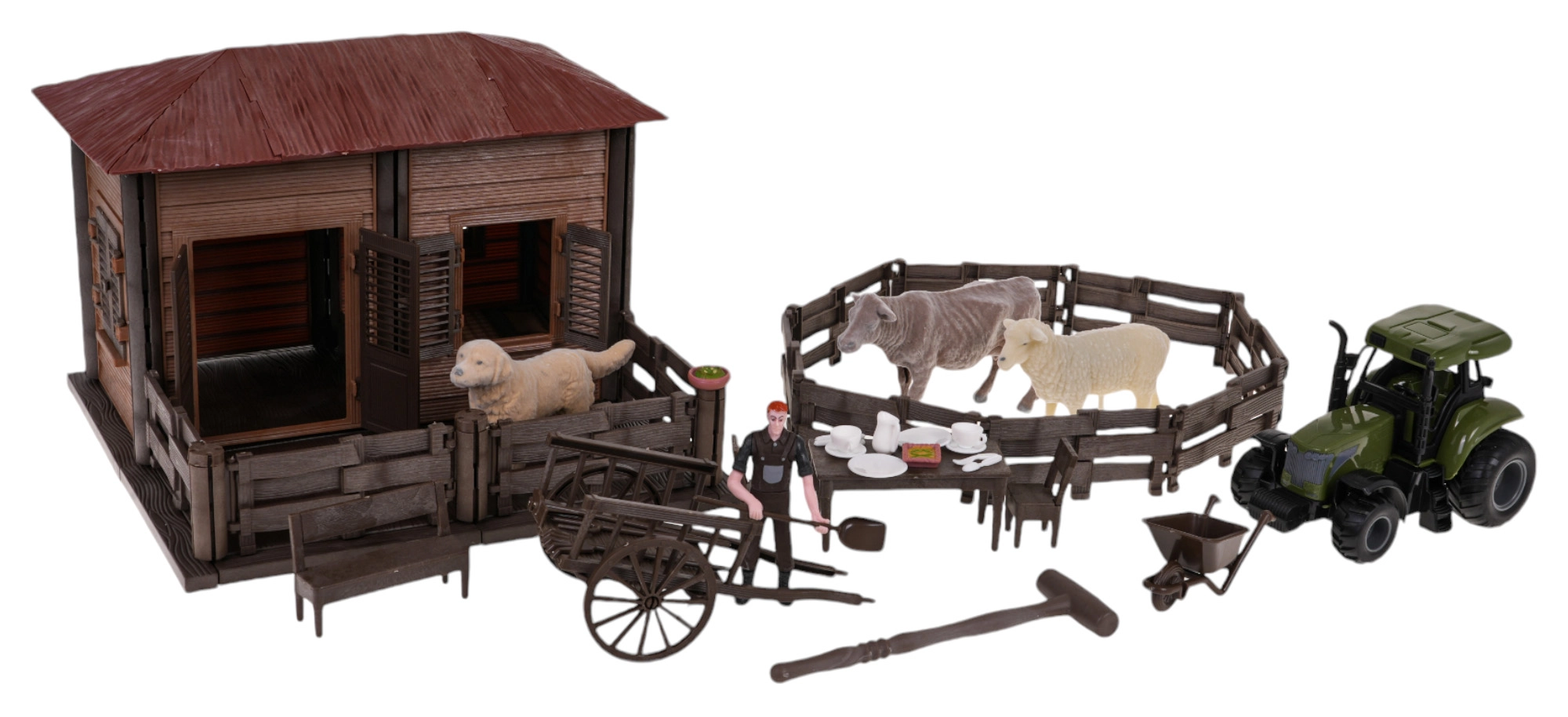 - Equipamiento completo de la granja, incluyendo vaca, oveja y perrito, que emiten sonidos realistas.
