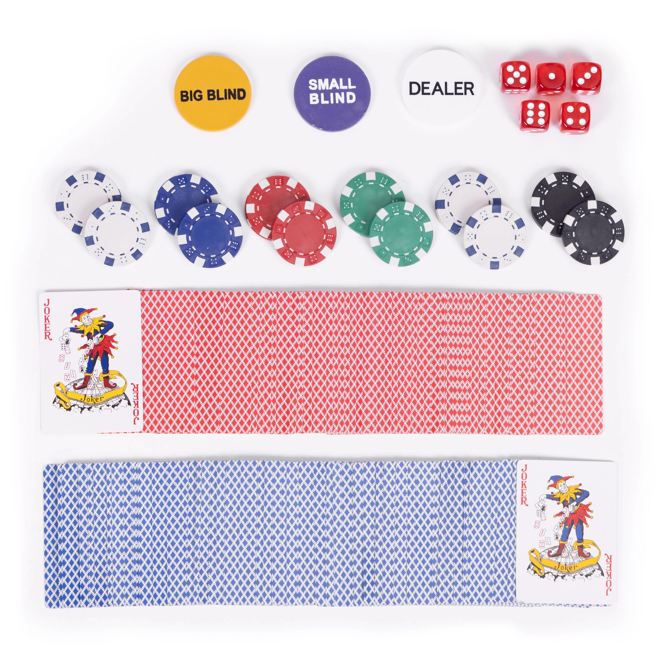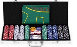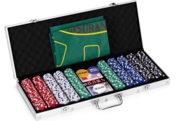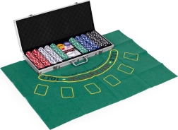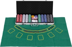 Incluye 500 fichas, 2 barajas, dados y un tapete de juego. Todo en un práctico maletín con cerradura.