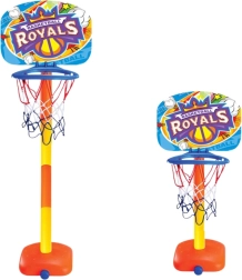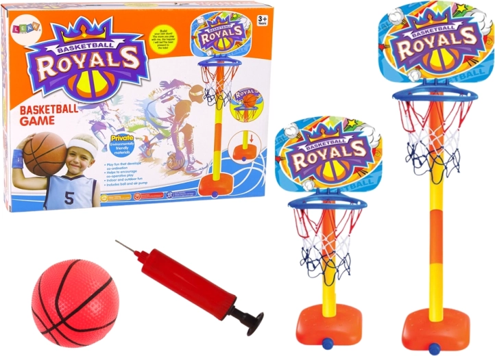 El set está diseñado para jugar en interiores y exteriores y, gracias a sus dimensiones compactas, cabe incluso en espacios más pequeños. El paquete incluye todo lo necesario: soporte con aro y red, pelota de baloncesto y bomba. El producto cuenta con certificado CE y cumple la norma EN 71.