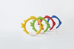 Cada aro está hecho de un material suave y seguro, agradable al tacto y fácil de sostener. El diámetro de 14,5 cm garantiza un agarre cómodo incluso para manos pequeñas, mientras que el atractivo diseño de pez fomenta la diversión y la motivación para moverse.