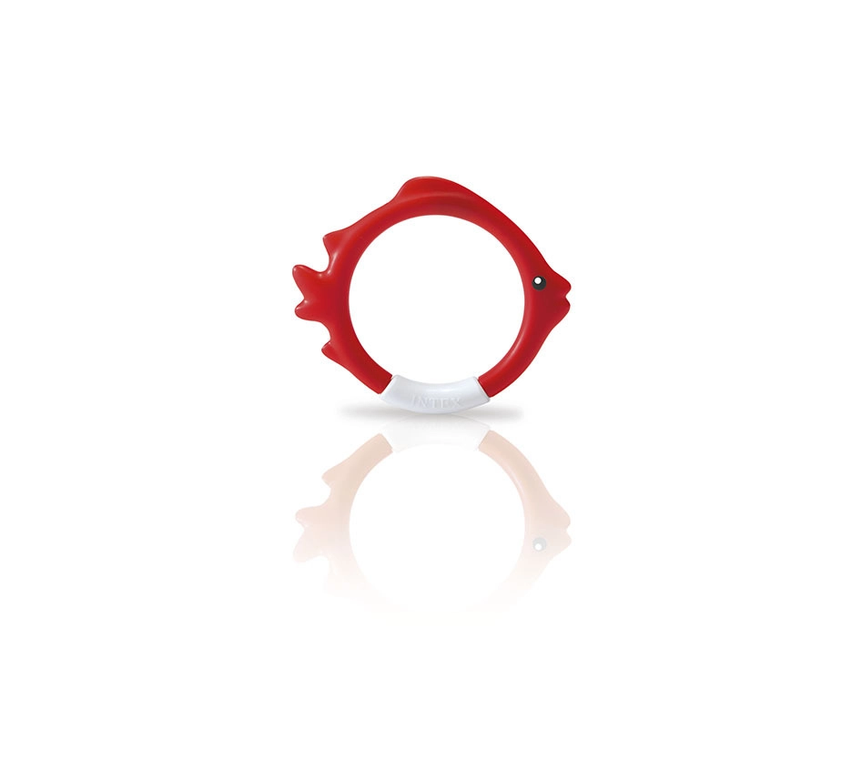 El set de aros de buceo con forma de pez de IN TEX es una ayuda ideal para el aprendizaje lúdico del buceo. Gracias a los colores llamativos y a su posición estable en el fondo de la piscina, los niños encuentran fácilmente el objetivo y con gusto practican la apnea y la orientación bajo el agua.