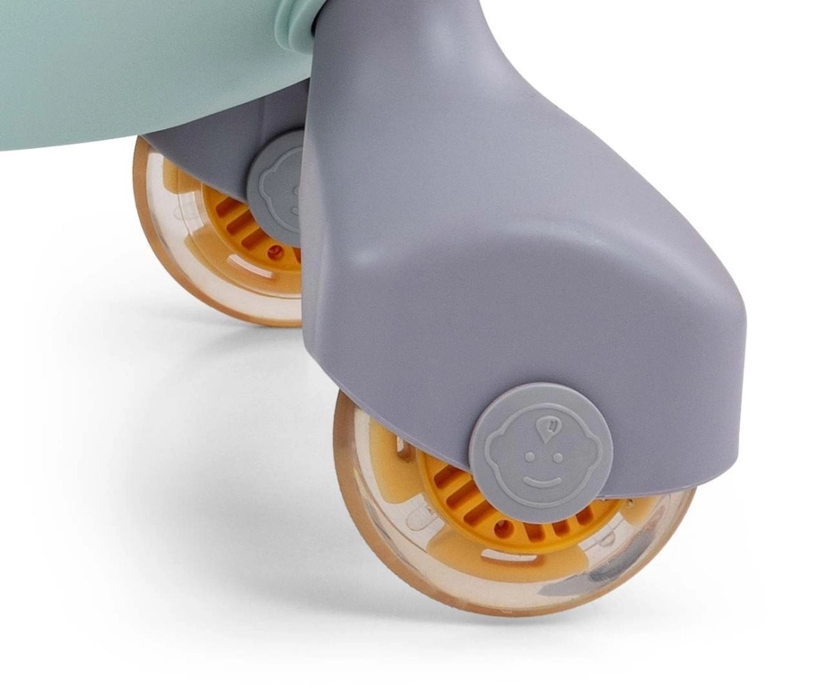El correpasillos Gravity está fabricado con plástico de alta calidad que garantiza ligereza y resistencia. Su diseño ergonómico y el asiento moldeado aseguran comodidad durante la conducción. La base estable y ancha junto con el centro de gravedad bajo proporcionan seguridad en su uso. Gracias al volante de fácil agarre y a las ruedas LED que se iluminan durante la marcha, la conducción es aún más atractiva.