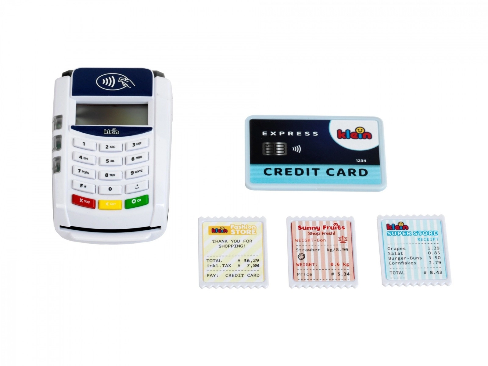 Descubre el divertido mundo de los pagos con el terminal infantil KLEIN, que imita fielmente un dispositivo real. Gracias a la tecnología sin contacto, los sonidos y los efectos luminosos, los niños podrán probar el papel de vendedor y cliente y aprender cómo se realiza una transacción de pago.