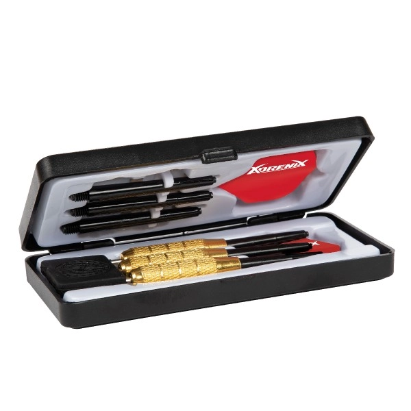 Este juego universal de dardos ofrece un agarre seguro y un vuelo estable gracias a la combinación de un cuerpo de dardo sólido y aletas de calidad. Las puntas metálicas garantizan una sujeción fiable en la diana y un rendimiento constante en cada lanzamiento. Con el estuche práctico, tendrás los dardos siempre guardados de forma segura y listos para llevar.