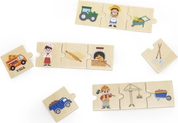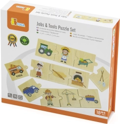 Descubre los divertidos rompecabezas de madera VIGA, que enseñan a los niños a partir de 18 meses sobre el mundo del trabajo. El set incluye 24 piezas, donde los niños emparejan 6 profesiones con las herramientas y vehículos correspondientes. El juego desarrolla la motricidad fina, el pensamiento lógico, la atención y la coordinación visual. Fabricado en madera de haya y pintado con pinturas no tóxicas: seguro, duradero e ideal como regalo.
