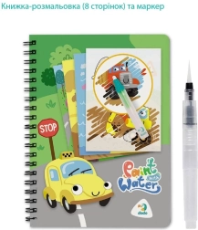 El pincel de agua revela los colores en la página y, al secarse, la imagen desaparece. Ideal para jugar repetidamente en casa y de viaje.
