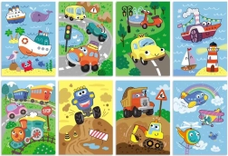 Ilustraciones alegres de coches, trenes, barcos y aviones apoyan el descubrimiento del mundo del transporte y desarrollan el vocabulario.
