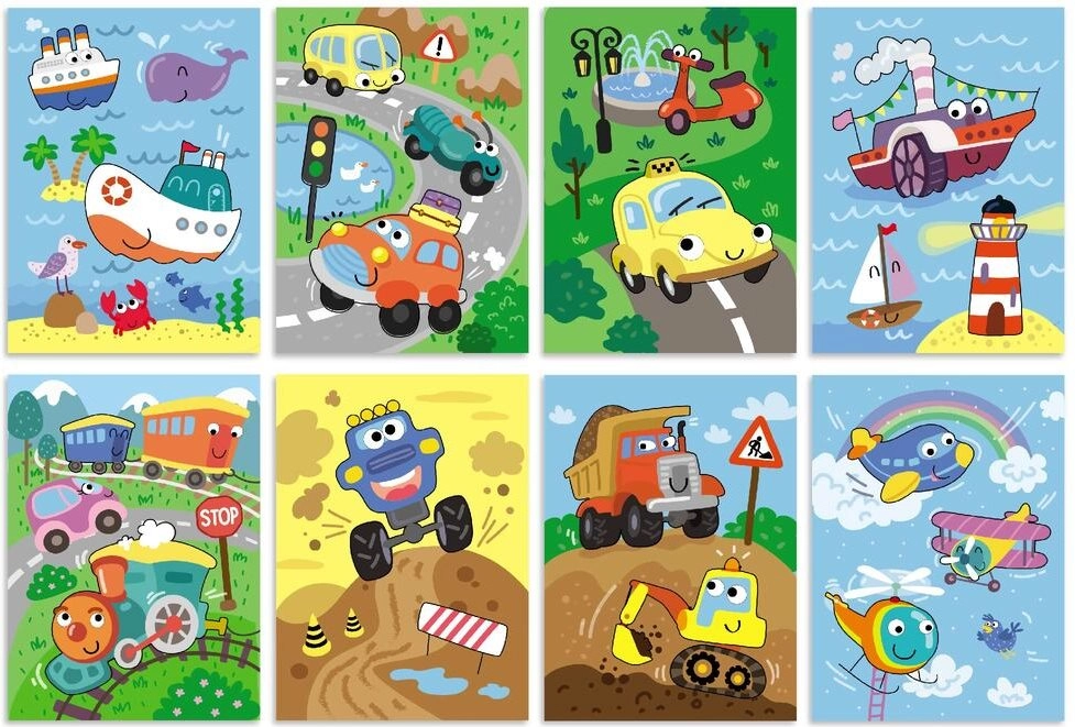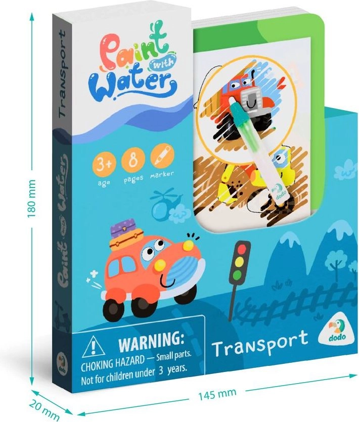 El bloc creativo con motivos de transporte ofrece diversión interminable: llena el pincel de agua, pásalo por la página y observa cómo aparecen colores intensos y detalles de coches, trenes o aviones. Al secarse, las ilustraciones vuelven a su estado original y los niños pueden pintar de nuevo.