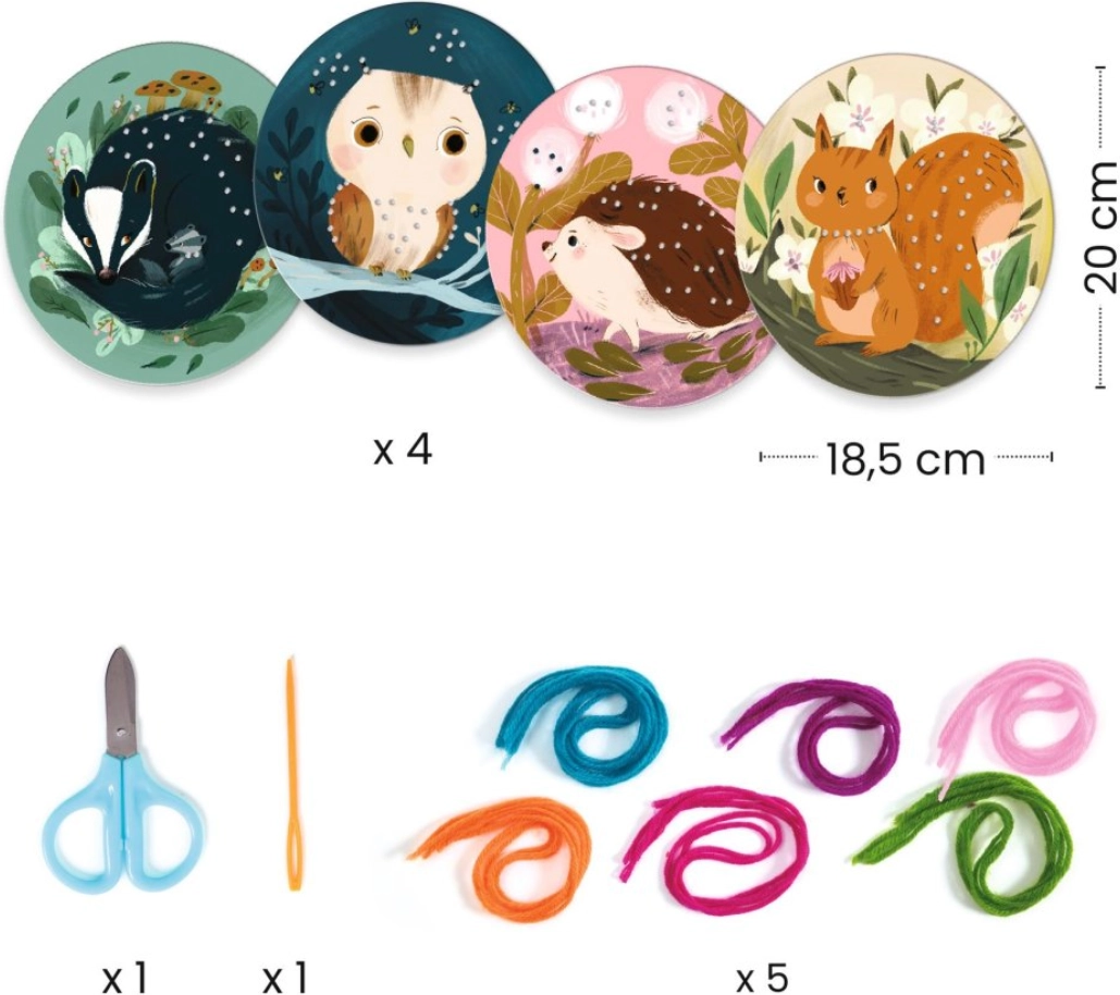 Descubre la alegría del bordado con el creativo set de Djeco para pequeños y grandes principiantes. Aprenderás 2 puntadas de bordado sencillas y crearás 4 adorables imágenes de animales para decorar la habitación infantil. El set desarrolla la motricidad fina, la paciencia y el pensamiento creativo, e incluye todo lo necesario para empezar a crear de inmediato.