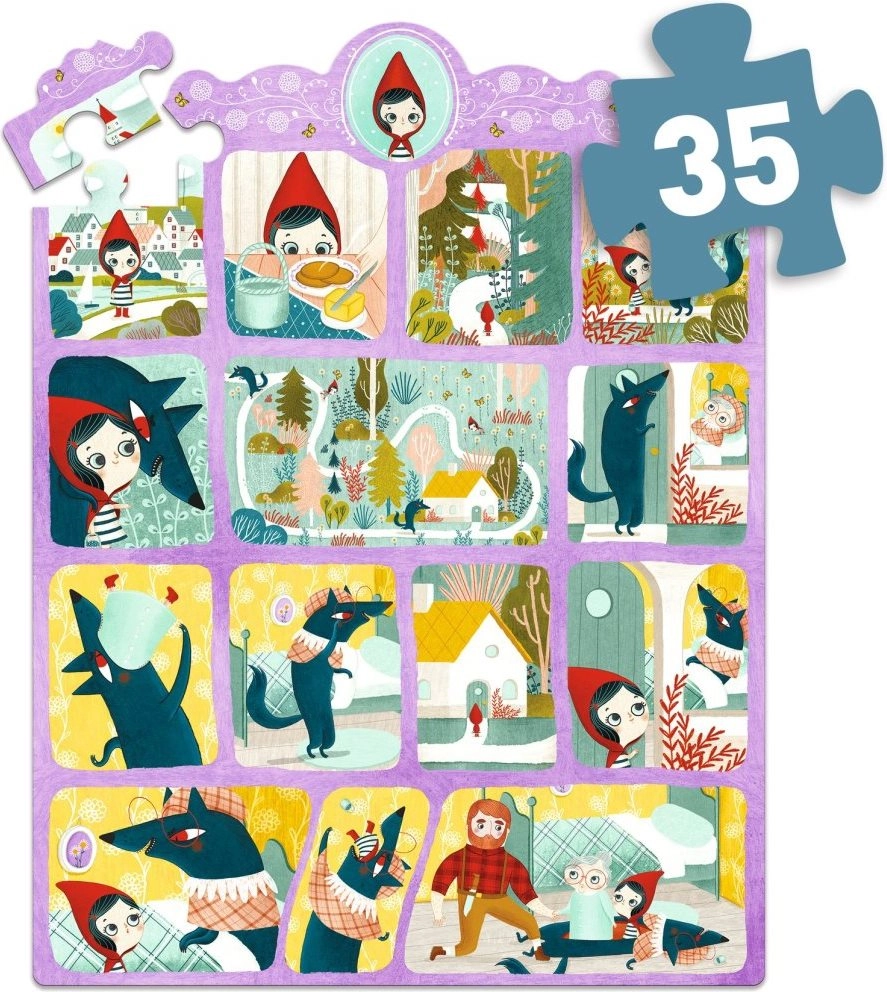 Este maravilloso rompecabezas presenta la historia de Caperucita Roja, narrada en forma de cómic. Una diversión excelente para familias y niños, que disfrutarán armándolo y leyendo el cuento al mismo tiempo. El paquete incluye no solo 35 piezas del rompecabezas, sino también un póster con la historia y 3 figuras de cartón que darán vida a tu juego creativo.