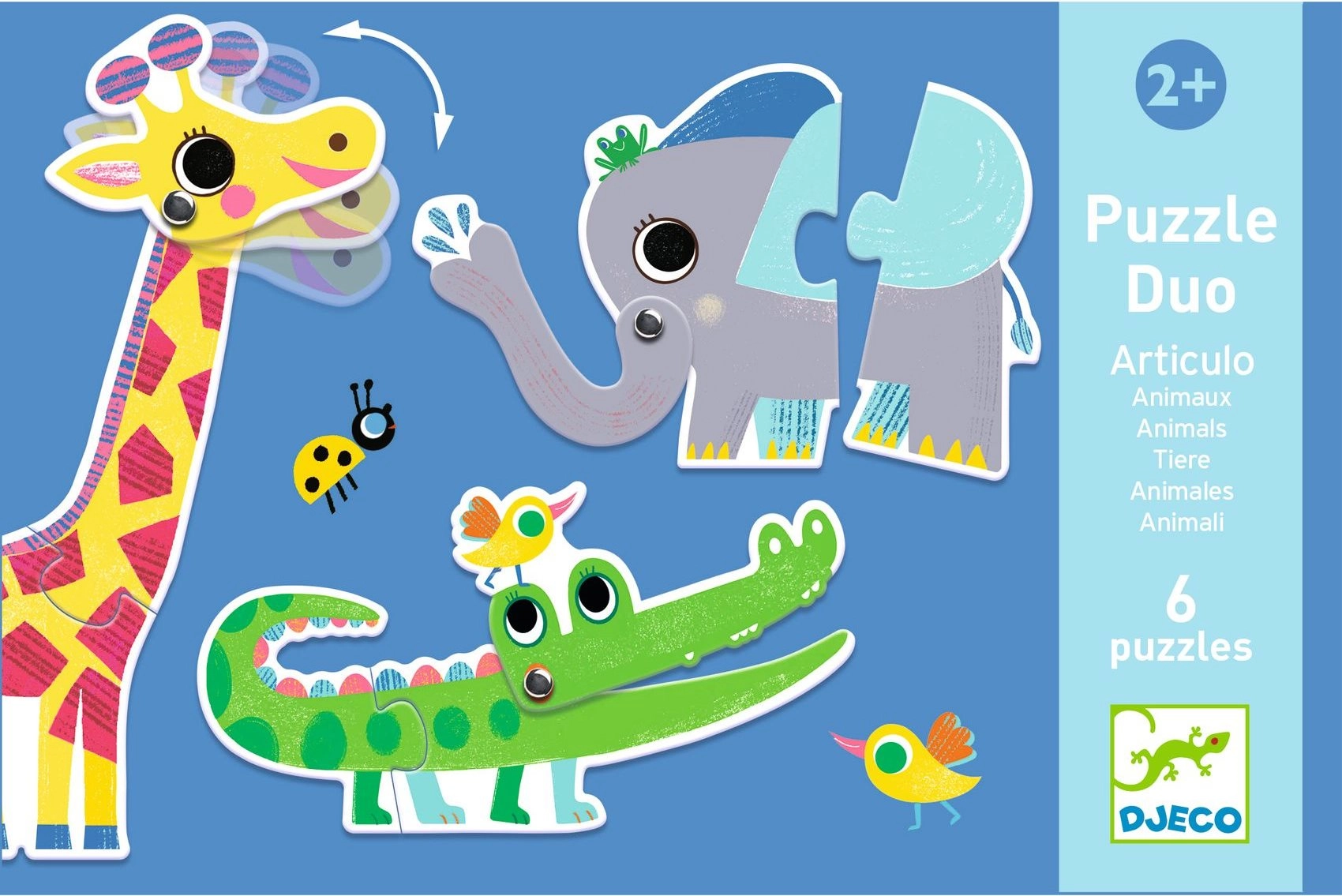 DJECO Puzzle Duo Animales es un juguete ideal para los más pequeños. El set contiene 6 rompecabezas de dos piezas que ayudan a desarrollar la motricidad fina y el pensamiento lógico. Las piezas grandes son fáciles de agarrar, lo que las hace adecuadas para manos pequeñas.