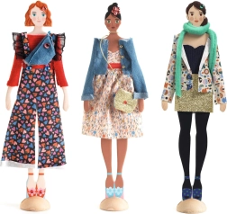 Set creativo para diseñadoras de moda principiantes de la marca DJECO, ideal para quienes desean iniciarse en la creación de modelos de moda. Incluye todo lo necesario para montar diseños sin máquina de coser.