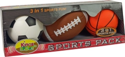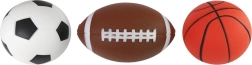 Divertido set de tres pelotas blandas para pequeños deportistas que ofrece juego seguro en casa y al aire libre. Gracias a su material ligero y suave, las pelotas son ideales para niños a partir de 3 años. El diseño imita pelotas reales de fútbol, baloncesto y béisbol, para que los peques puedan imitar sus deportes de equipo favoritos mientras mejoran su coordinación y condición física.