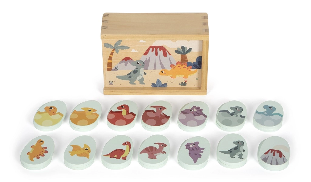 Sumérgete en el aventurero mundo de la era prehistórica con el Pexeso Dino. Este juego de mesa para toda la familia ofrece 14 pares de imágenes de dinosaurios en forma de huevos, con lo que entrenas la concentración y la memoria de manera lúdica. Gracias a su tamaño compacto y al práctico estuche con tapa deslizante, es ideal tanto para jugar en casa como para llevar de viaje.