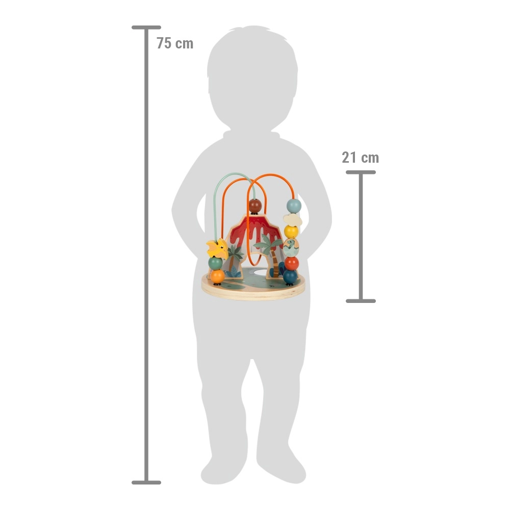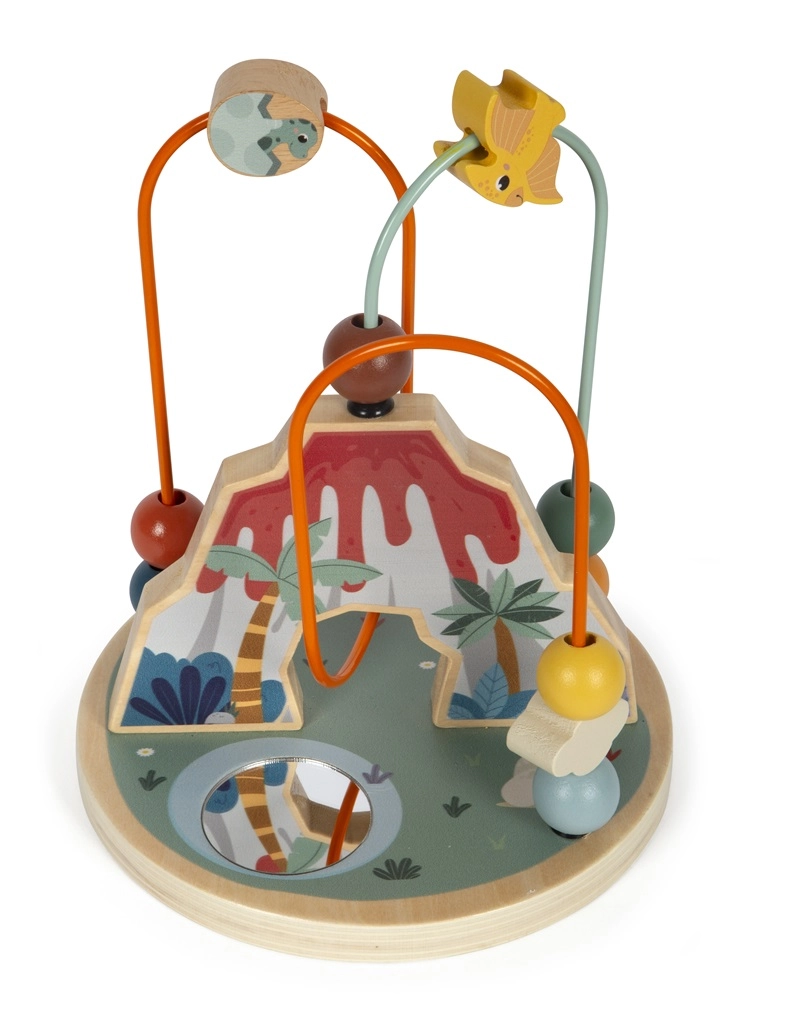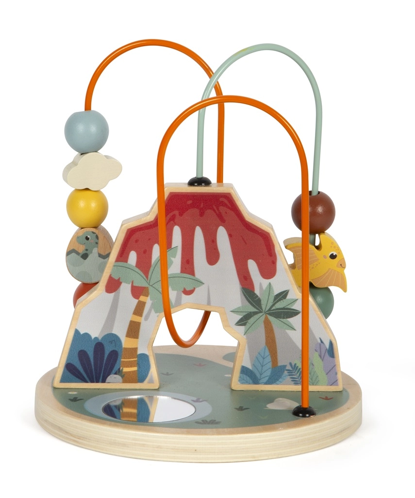 Este laberinto de cuentas con motivo de dinosaurios es el juguete ideal para el desarrollo infantil. Enseña la coordinación mano-ojo y estimula la creatividad, a la vez que atrae por su original figura de volcán. El juguete incluye dos bucles de colores con cuentas variadas y un espejo central situado en la base, para que todo pueda verse desde otro ángulo.