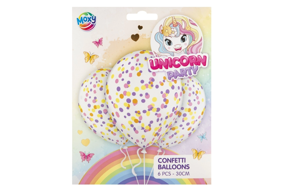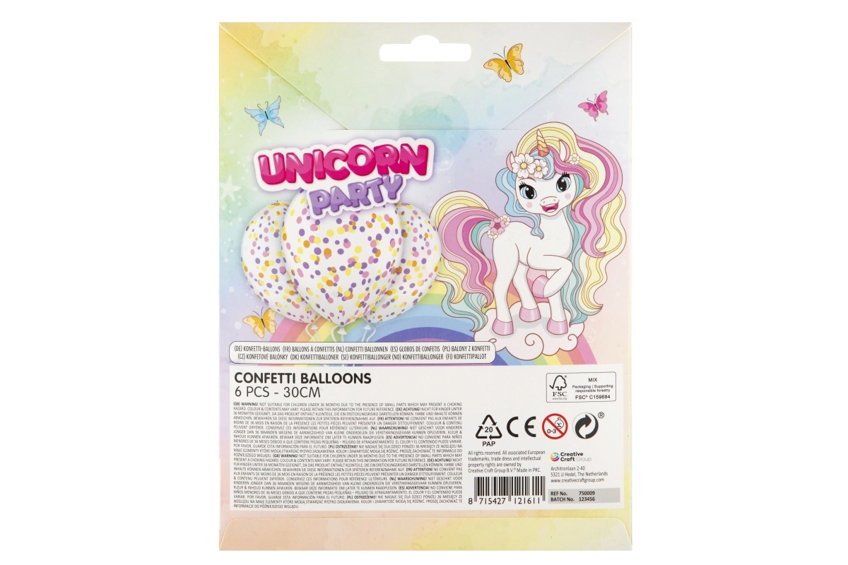 Los globos de látex transparentes con confeti de colores son una forma fácil de lograr una decoración impactante. Gracias a su tamaño universal de 30 cm, son perfectos para el photocall, la mesa festiva o como complemento de guirnaldas de globos. Para realzar el efecto, tras inflarlos, frota suavemente el globo para que el confeti se adhiera a las paredes interiores.