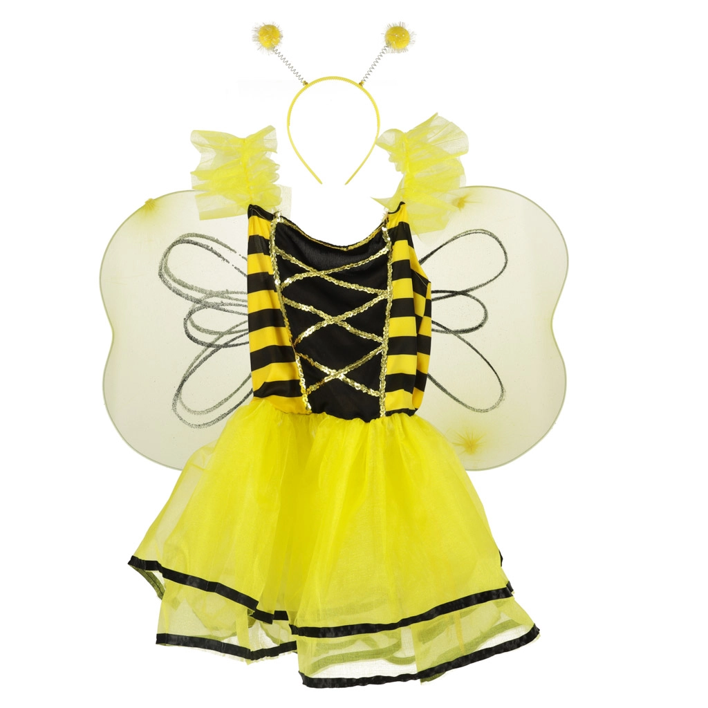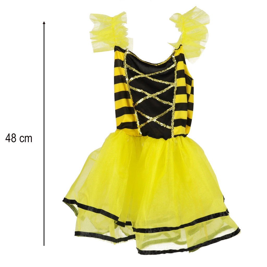 El disfraz consta de vestido, alas y diadema con antenas, lo que garantiza un look completo para tu pequeña abejita.