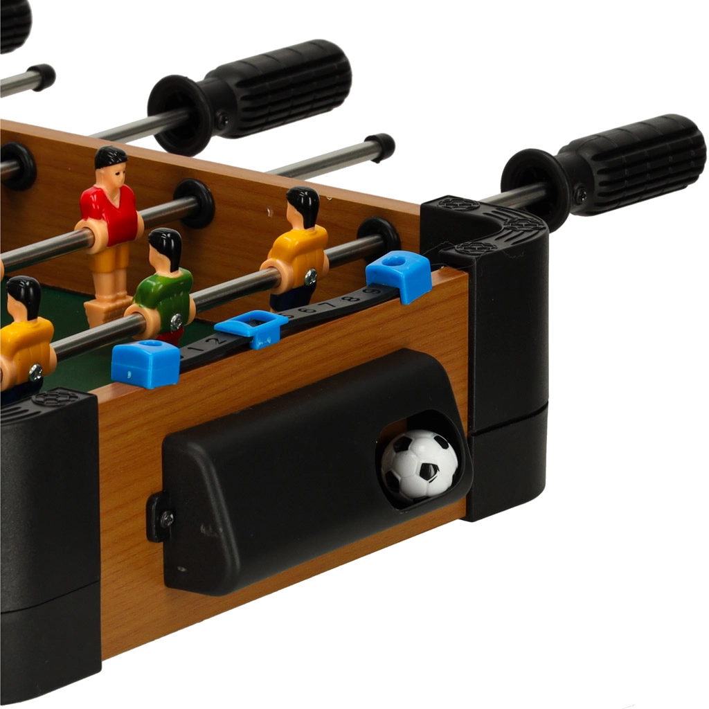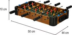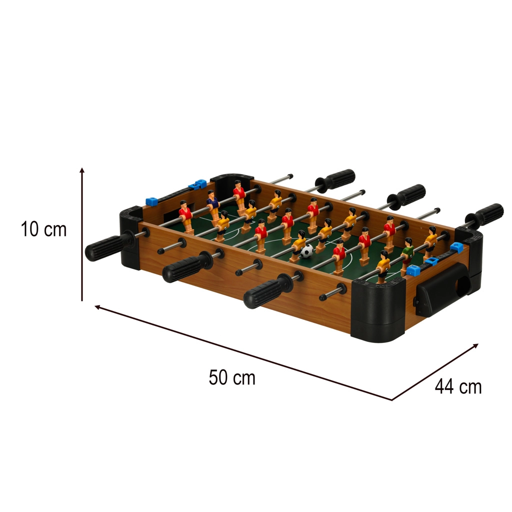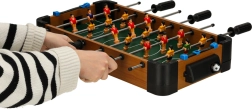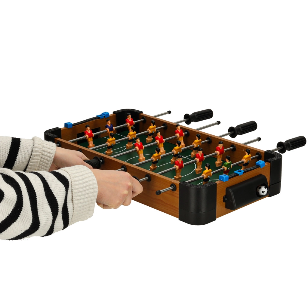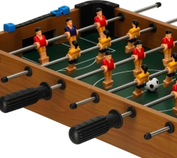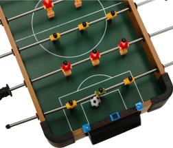 El futbolín de mesa en un tamaño práctico cabe en cualquier mesa y se transporta fácilmente. Gracias a su robusta fabricación en MDF y a las resistentes varillas metálicas con empuñaduras de plástico, disfrutarás de disparos rápidos y precisos, ya juegues con niños, familia o amigos. Ideal para torneos en casa y para entrenar el fair play.