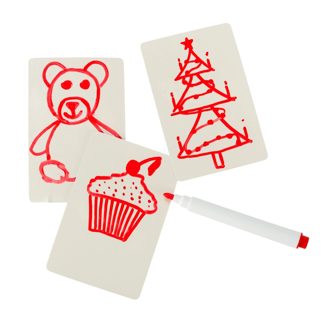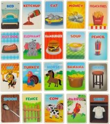 El set incluye tarjetas con inscripciones en inglés, una excelente manera de aprender nuevo vocabulario y desarrollar habilidades lingüísticas.