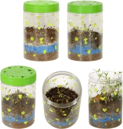 El recipiente transparente con orificios de ventilación permite observar el crecimiento de las plantas. Incluye todos los componentes necesarios para crear un jardín con bonitas capas.