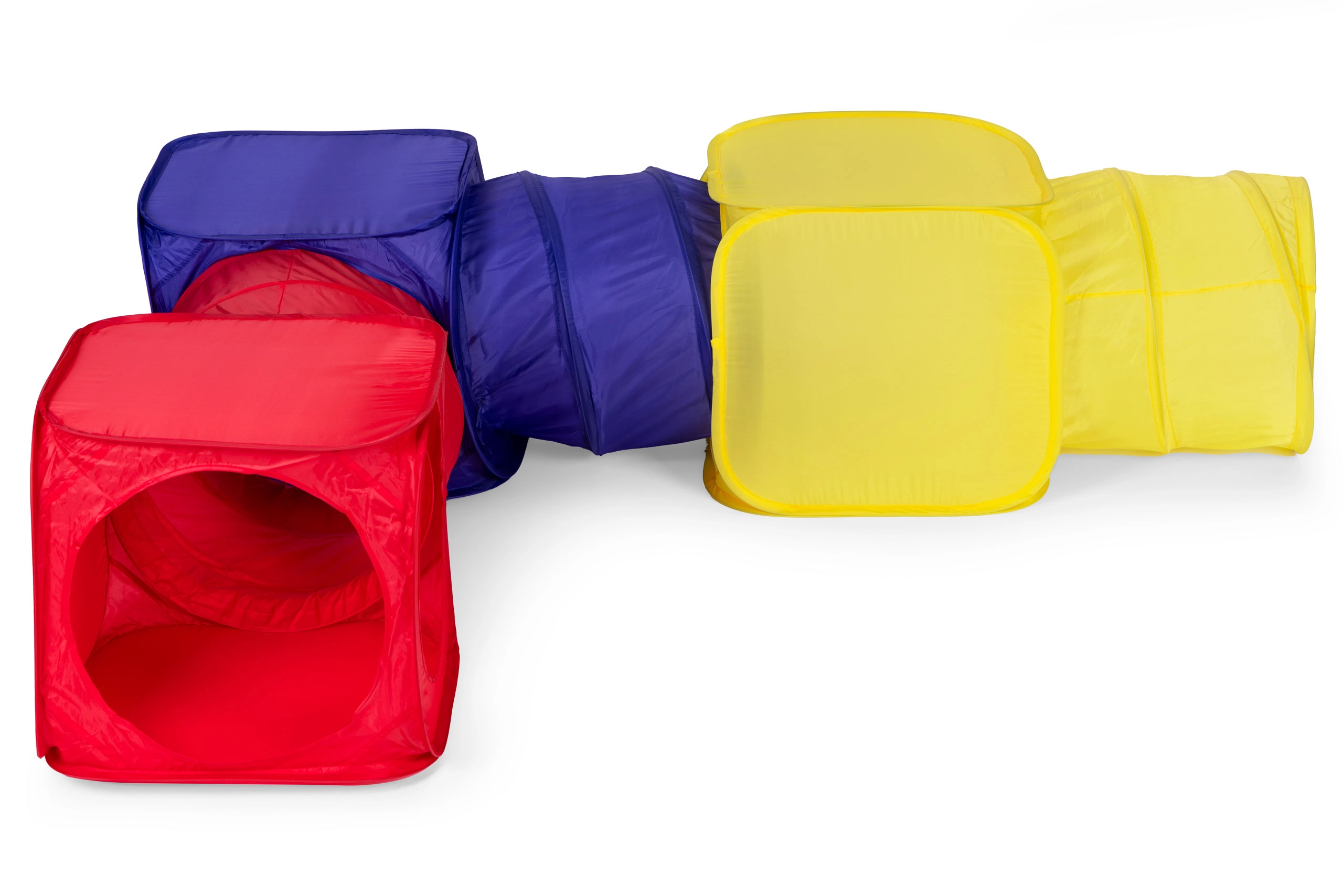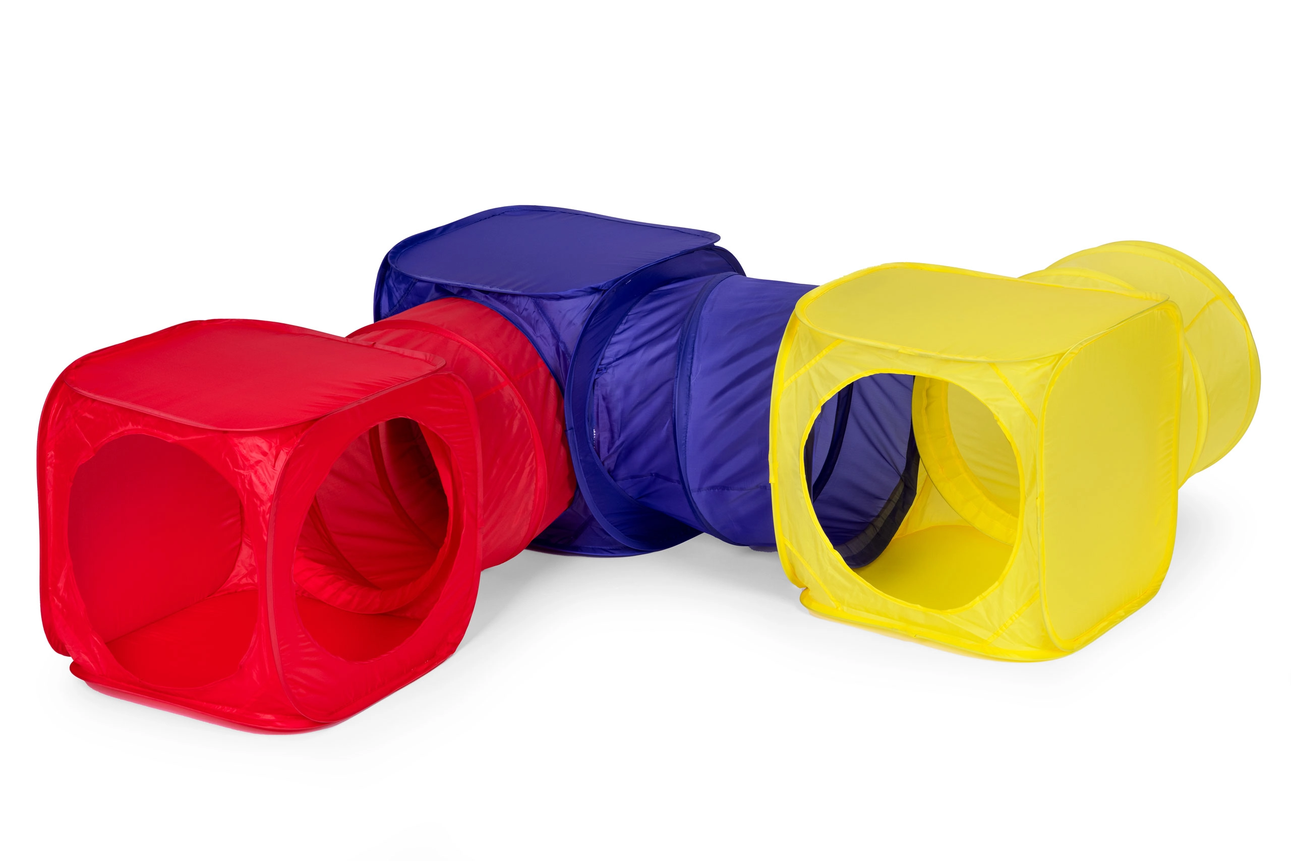 Este set para niños incluye 3 tiendas en forma de cubo y 3 túneles, que se pueden combinar y colocar en cualquier disposición. Su montaje sencillo y diseño ligero garantizan diversión sin fin.
