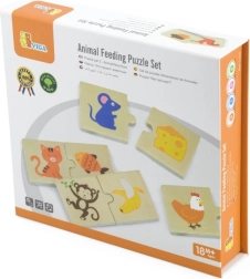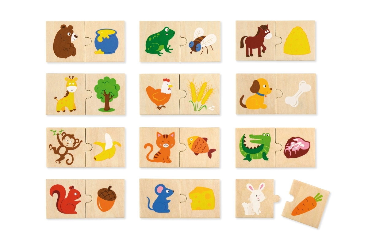- 24 piezas de madera con ilustraciones de animales y su comida