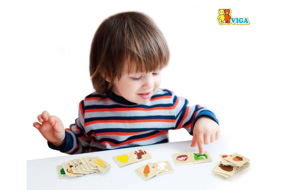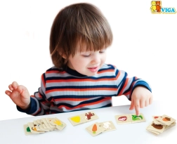 Aprender jugando es lo más divertido. En este set, los niños forman las parejas correctas: un tierno animal y el alimento que le gusta. Gracias a los colores llamativos y a las ilustraciones claras, comprenden rápidamente las relaciones y desarrollan de forma natural el vocabulario, el reconocimiento y el pensamiento lógico.