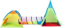 El alegre set de tiendas infantiles 3 en 1 de la marca IPLAY convierte la habitación y el jardín en un parque de aventuras. Incluye tienda iglú, teepee y túnel de conexión con la opción de usar cada pieza por separado. Estructura ligera y segura, poliéster resistente y montaje rápido garantizan horas de diversión activa para niños a partir de 3 años.