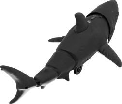Este tiburón negro de plástico de alta calidad destaca por su aspecto realista: característicos dientes blancos, aleta dorsal afilada y larga cola que garantizan un movimiento “vivo”. El mando por infrarrojos permite a los niños maniobrar fácilmente: adelante, atrás, izquierda y derecha. Durante la marcha, el tiburón mueve la cola y el cuerpo, tiene ojos iluminados y puede nebulizar agua para una experiencia de juego aún más intensa.