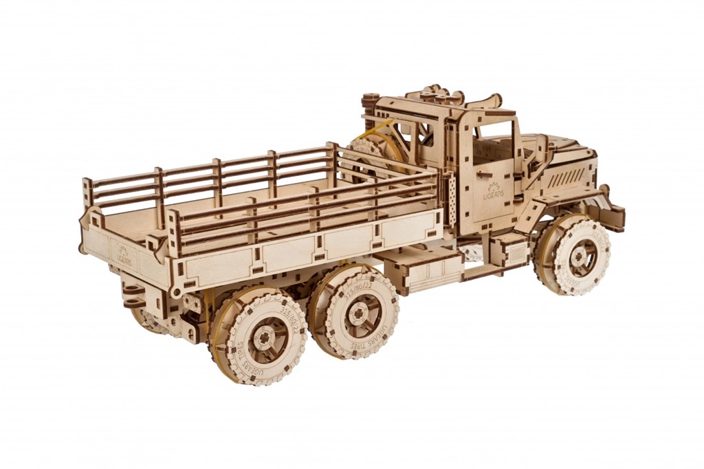 Disfrute construyendo un camión icónico inspirado en las legendarias máquinas 6x6. El motor detallado bajo el capó abatible, las manillas funcionales de las puertas, los retrovisores ajustables y las puertas abatibles del compartimento de carga realzan tanto el aspecto auténtico como la funcionalidad del modelo. El motor de resorte transmite la fuerza a través de dos diferenciales al eje delantero y trasero, por lo que el modelo realmente se desplaza.
