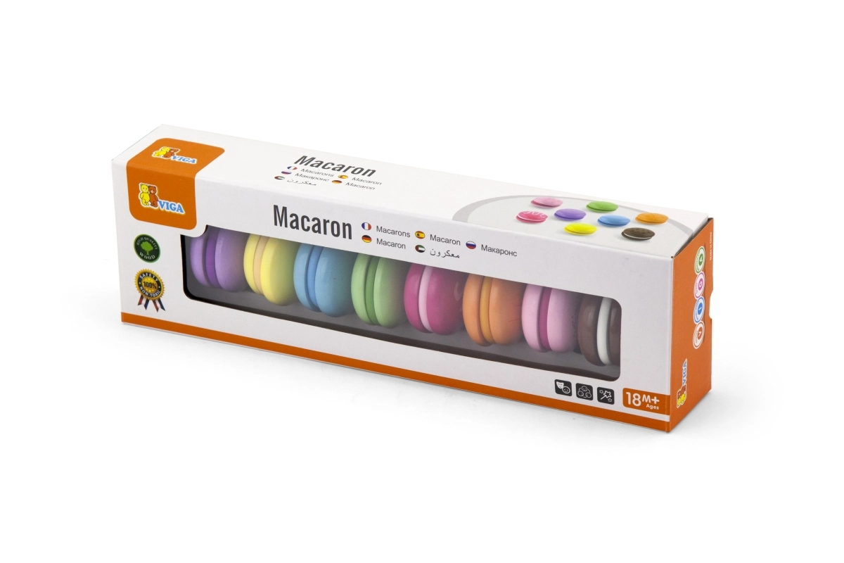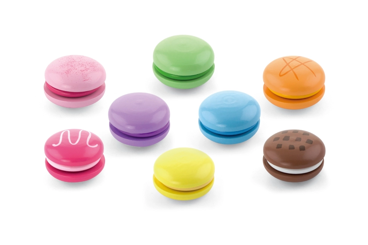 Los macarons están hechos de madera de alta calidad y pintados con pinturas no tóxicas. Los bordes suaves y la resistencia del material son ideales para los más pequeños.